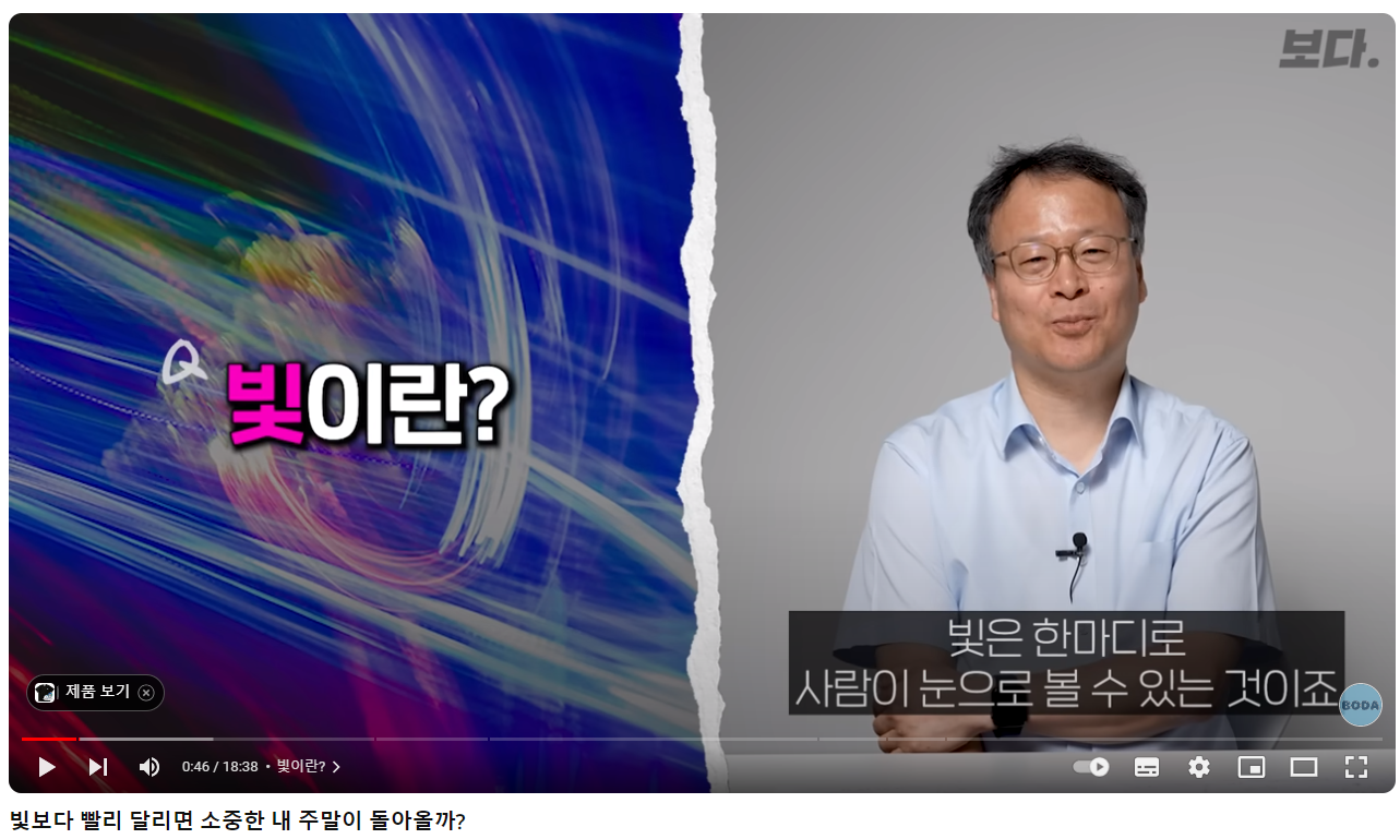 유튜브 채널 '보다'에서 저희 스쿨 고재현 교수님(물리학자님)과 떼려야 뗄 수 없는 빛과 시간에 관한 이야기를 나눠봤습니다.