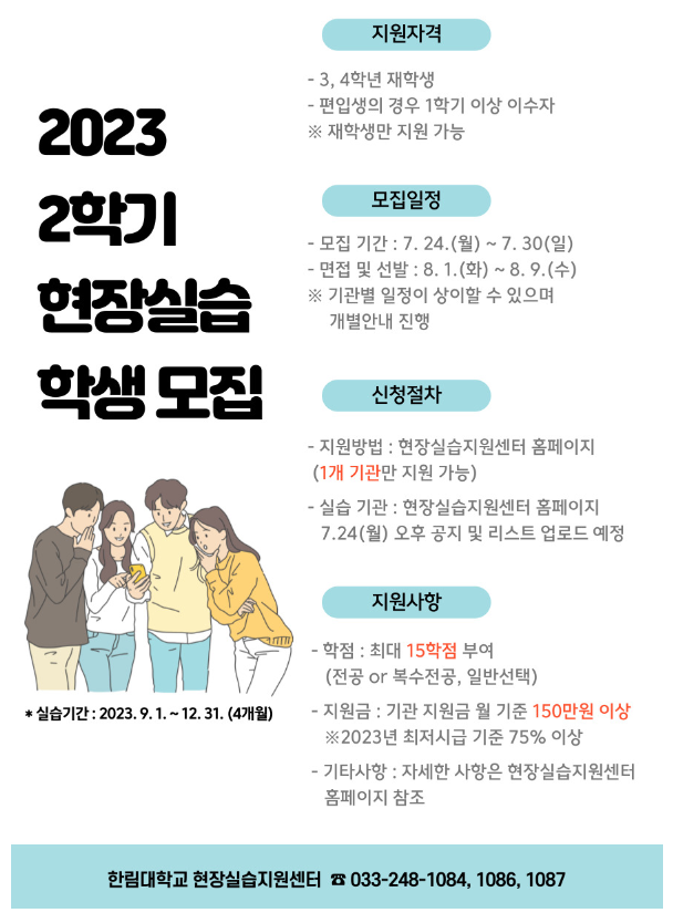 (현장실습지원센터) 2023학년도 2학기 현장실습학기제 학생 모집 안내