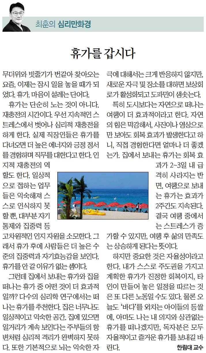 최훈교수님, [최훈의 심리만화경] 휴가를 갑시다